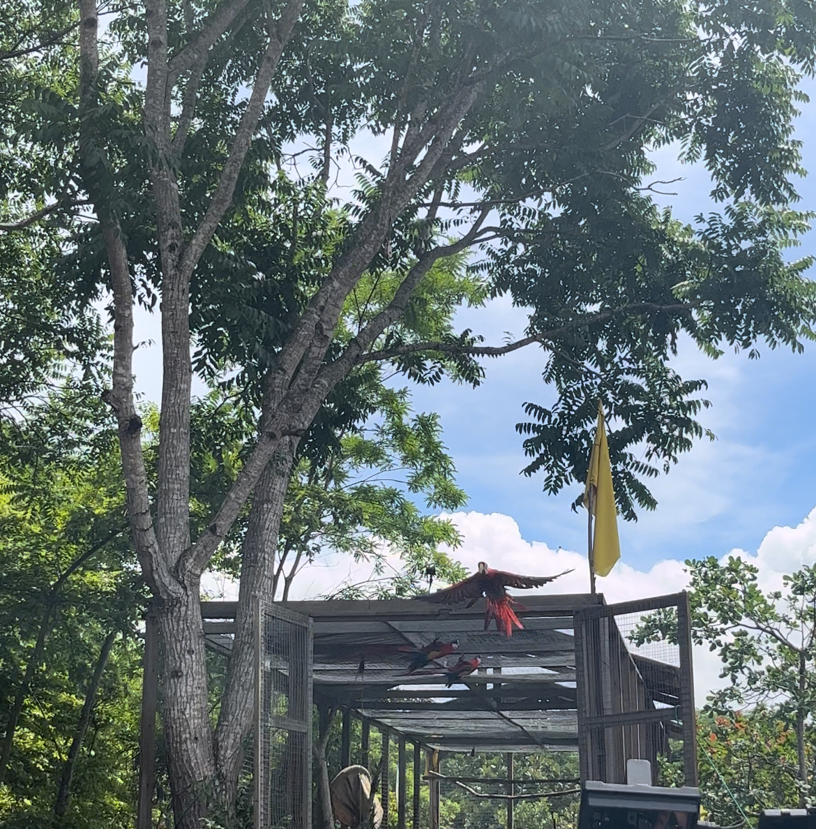 Es majestuoso el momento en que extienden sus alas para iniciar su vuelo, ya no dentro del aviario, sino bajo la inmensidad del cielo y teniendo a la vista la vegetación abundante de esa área conocida como su valle sagrado, donde pueden ser vistas en jardines, campo abierto y en los atardeceres dentro del parque arqueológico y de Macaw Mountain, donde les brindan nutrientes y cuidados para su rehabilitación y reproducción.