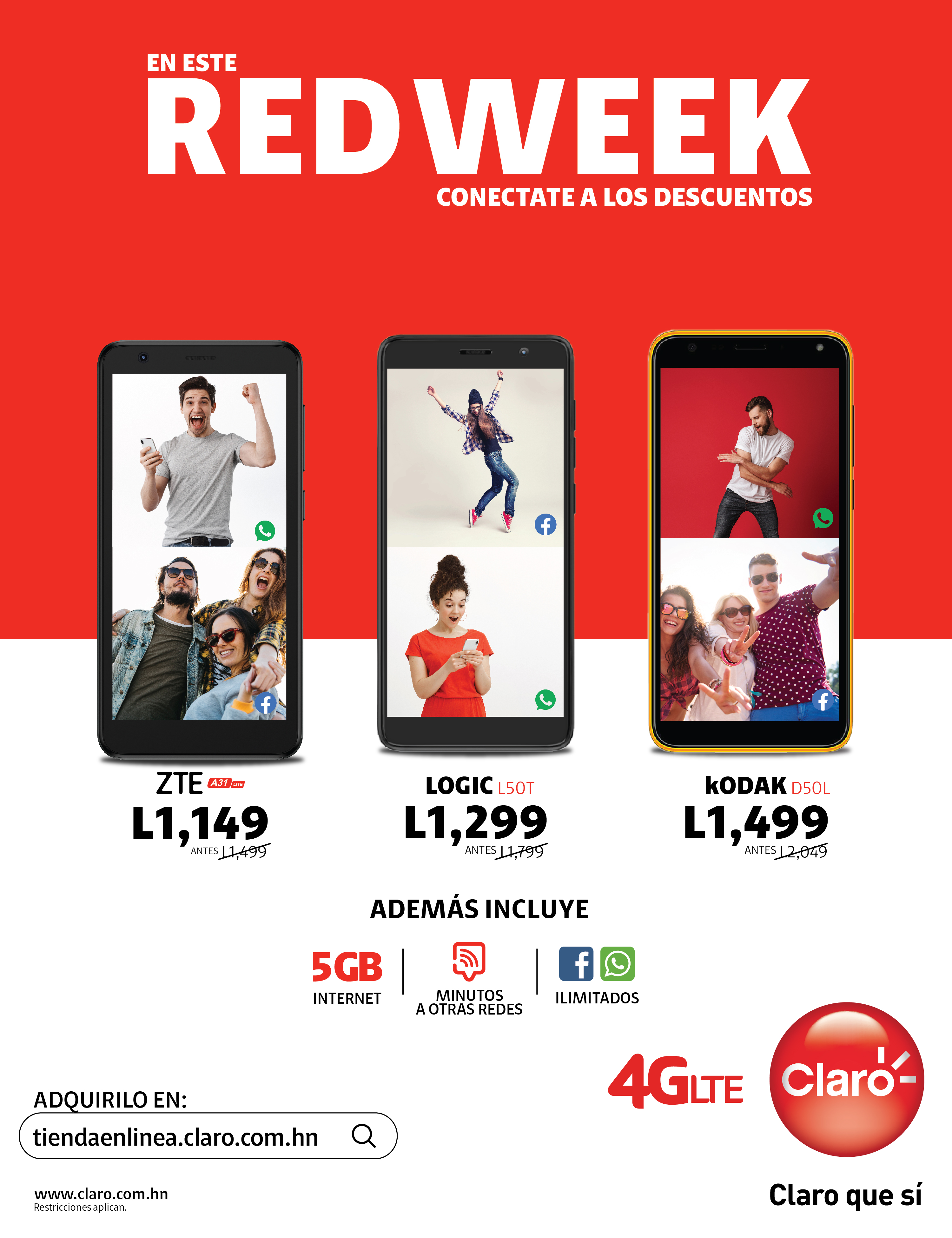 Tegucigalpa, 07 de noviembre de 2022. Claro anuncia el inicio de su esperada Red Week con los mejores descuentos del año en sus planes pospago, así como, smartphones a precios increíbles que estarán disponibles todo el mes de noviembre.